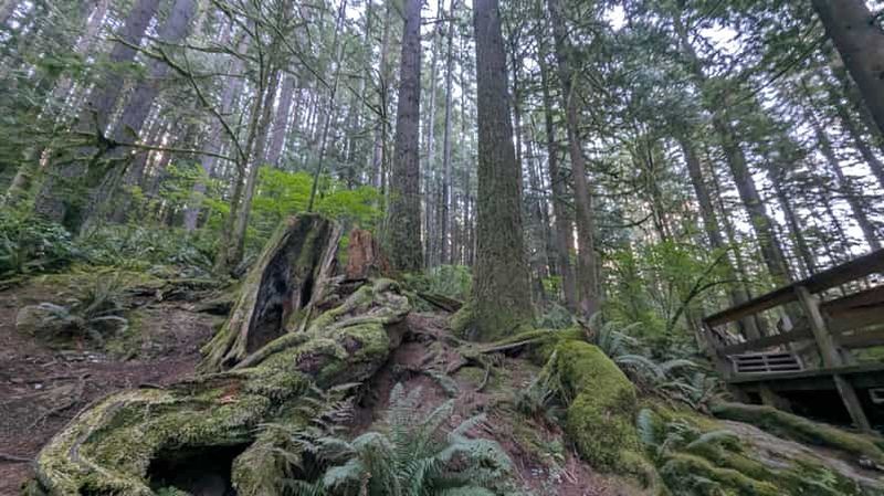Inauguré en 2004, Treetops Adventure propose un ensemble unique de passerelles suspendues parmi des cèdres centenaires. Élevées jusqu’à 33 mètres, ces plates-formes offrent un point de vue inoubliable sur la canopée.