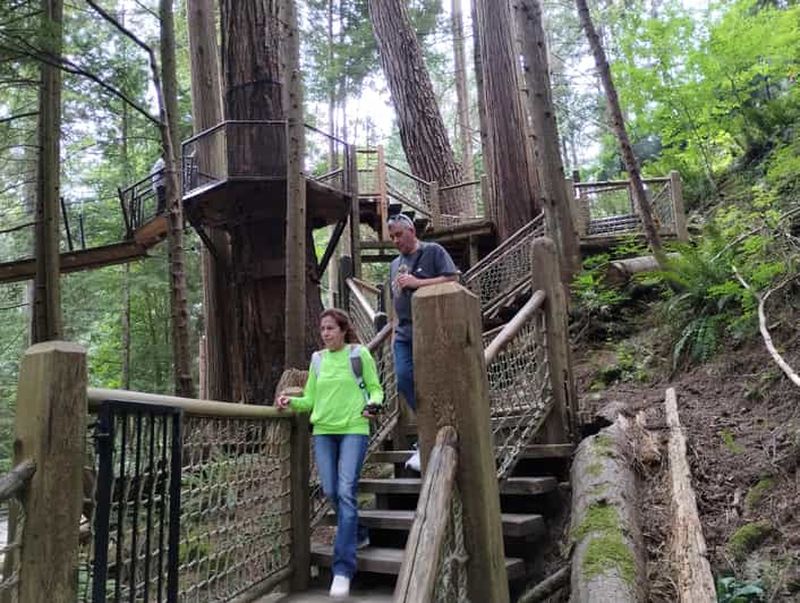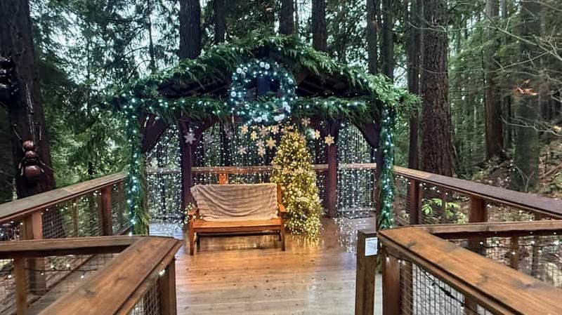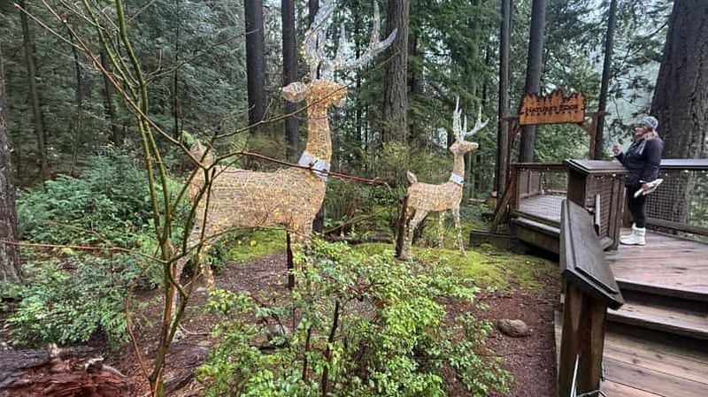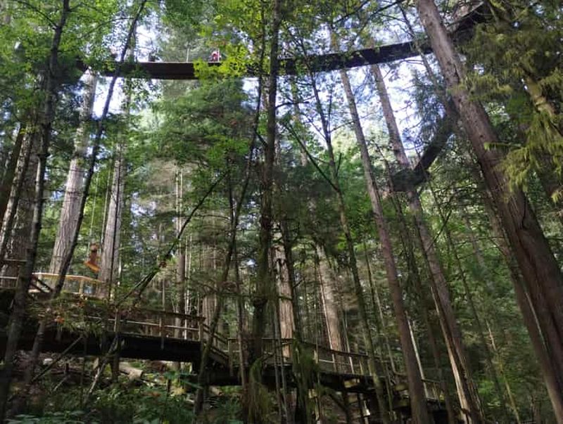Inauguré en 2004, Treetops Adventure propose un ensemble unique de passerelles suspendues parmi des cèdres centenaires. Élevées jusqu’à 33 mètres, ces plates-formes offrent un point de vue inoubliable sur la canopée.