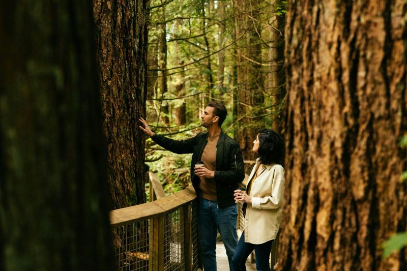 Inauguré en 2004, Treetops Adventure propose un ensemble unique de passerelles suspendues parmi des cèdres centenaires. Élevées jusqu’à 33 mètres, ces plates-formes offrent un point de vue inoubliable sur la canopée.