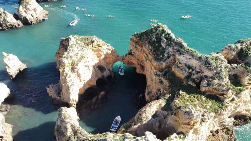 Découvrez la célèbre Ponta da Piedade lors d'une croisière au départ de Lagos. Explorez les grottes marines, les arches ...