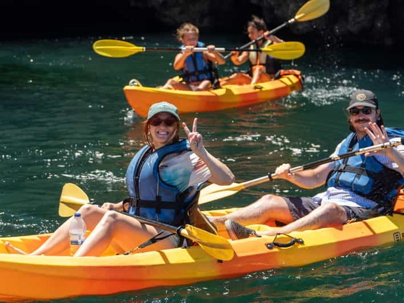 Découvrez les secrets de la côte de l'Algarve lors d'un voyage de 4 heures qui allie beauté naturelle et expérience gastronomique exclusive. En partant de Lagos en direction de Burgau, nous naviguerons à travers des grottes cachées et des plages isolées, et nous effectuerons une visite incontournable de la mythique Ponta da Piedade.
