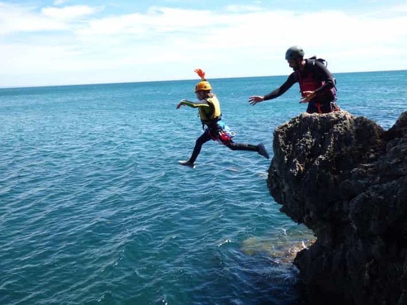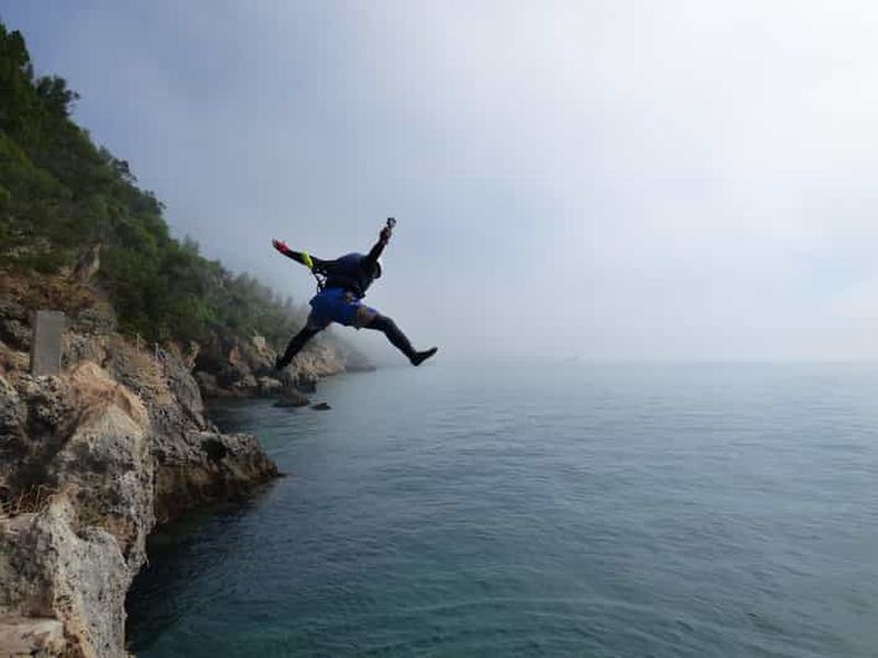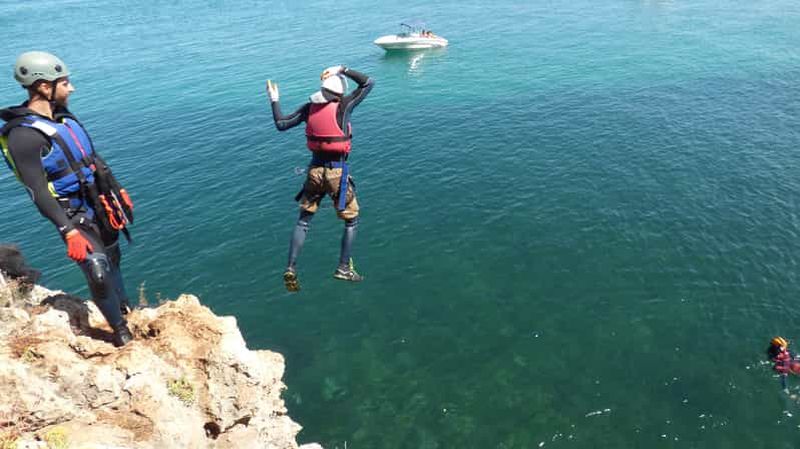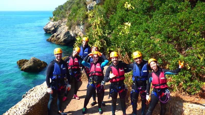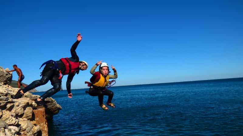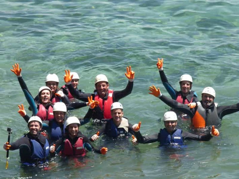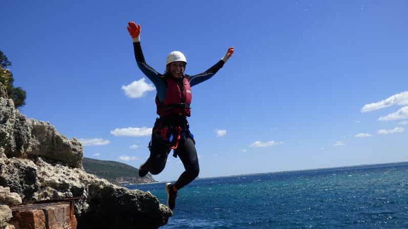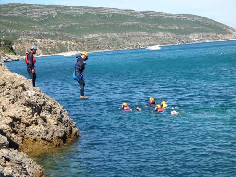 Découvrez la côte d'Arrábida lors de cette excursion de coasteering au départ de Portinho da Arrábida. Faites de l'escal...
