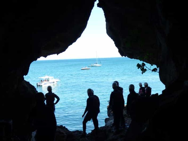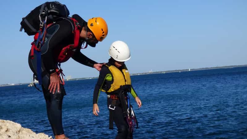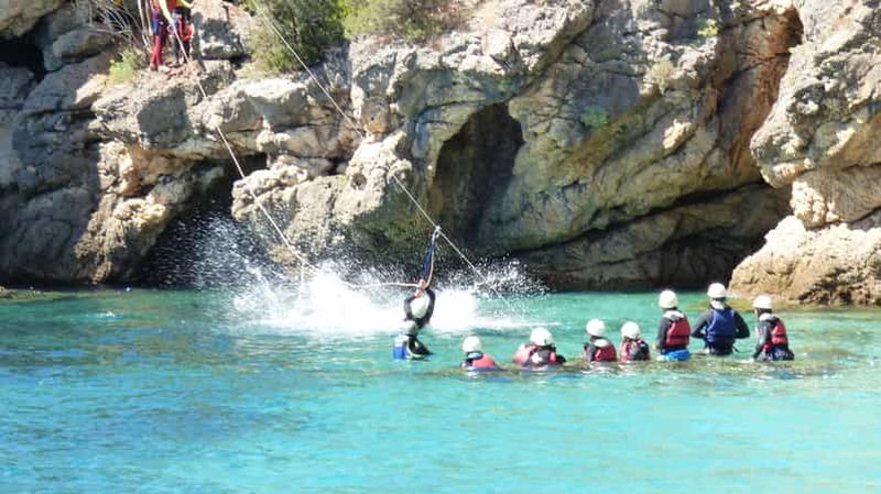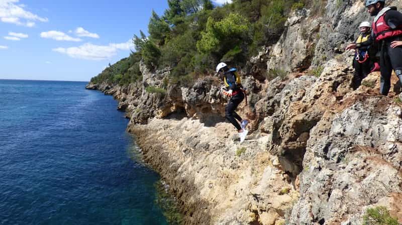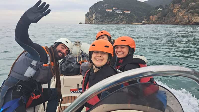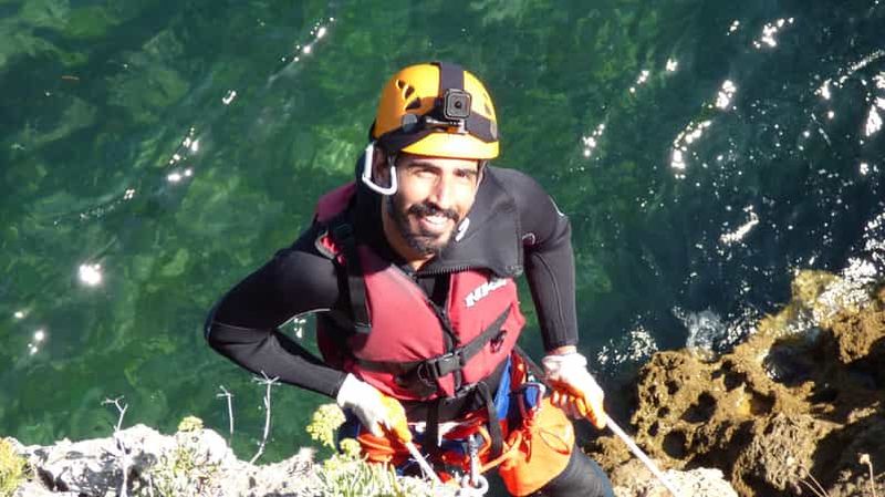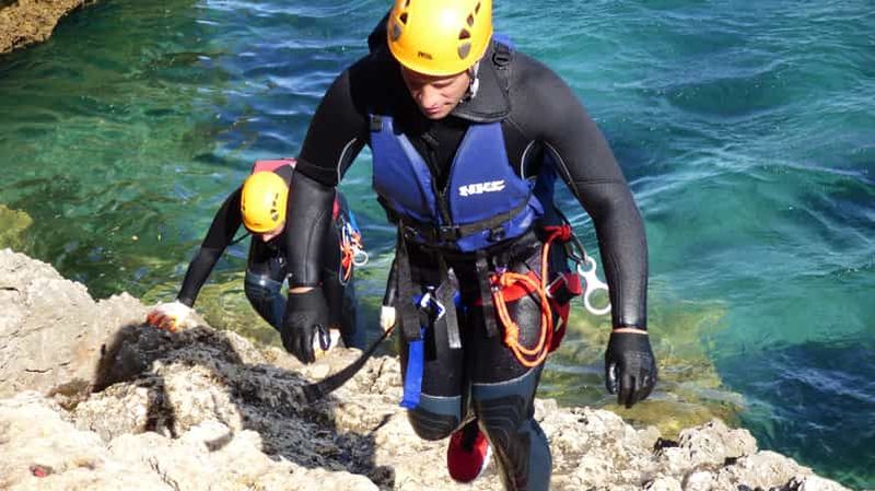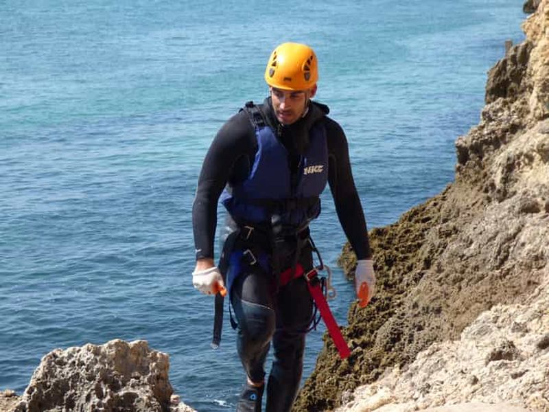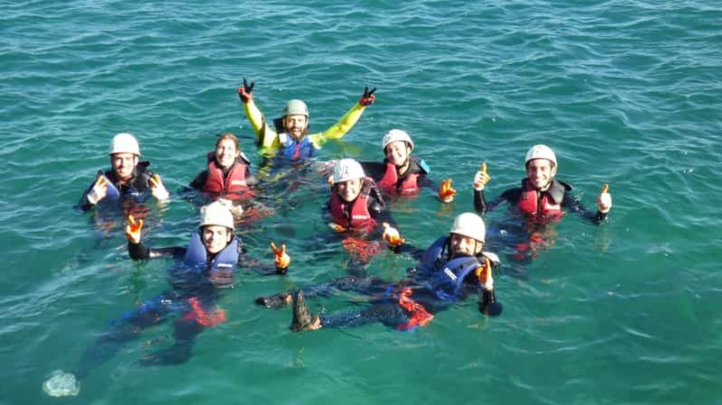 Découvrez la côte d'Arrábida lors de cette excursion de coasteering au départ de Portinho da Arrábida. Faites de l'escal...