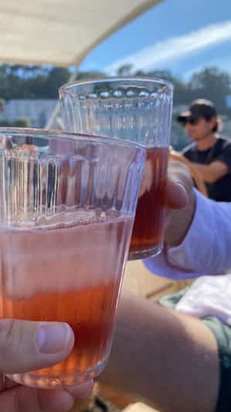 Cette sortie de deux heures part généralement vers 18h30-19h du quai de Gaia, juste en dessous des chais où s’empilent encore les grandes enseignes des maisons de porto. Le prix tourne autour de 25-30€ avec un verre de porto inclus (souvent un ruby basique, honnêtement pas le meilleur qu’on puisse trouver, mais l’ambiance compense). Le bateau est un catamaran moderne ouvert sur les côtés, parfait pour profiter de la brise. Le passage au pied du pont Arrábida, gigantesque structure en arc qui enjambe l’embouchure du Douro, offre l’un des plus beaux angles sur le fleuve qui s’élargit vers l’Atlantique.