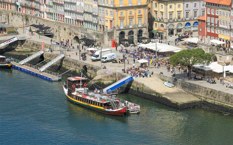 Cette sortie de 50 minutes représente le format le plus classique à Porto, celui qu’on retrouve chez tous les opérateurs. L’embarquement se fait en bas du quartier de Ribeira, près des anciens entrepôts où s’amarraient autrefois les bateaux rabelo chargés de tonneaux de porto descendus depuis la vallée. Le tarif tourne autour de 15-18€ selon la saison, et un commentaire audio retrace l’histoire des six ponts, dont le Maria Pia construit par l’équipe d’Eiffel. Le bateau utilisé est généralement une reproduction moderne du rabelo, stable et couvert (arriver une dizaine de minutes avant permet d’obtenir les meilleures places).