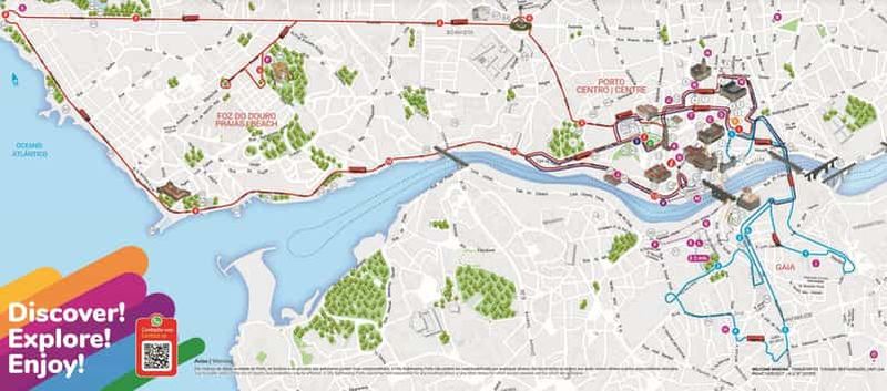 Les bus suivent les mêmes lignes que précédemment, tandis que l’embarquement bateau s’effectue près du pont Dom Luís. Les rotations de navigation commencent vers 10h et se poursuivent jusqu’en fin d’après-midi. Le billet n’inclut pas l’entrée des chais de Vila Nova de Gaia. L’intérêt réside dans la vision des ponts depuis l’eau et la perspective unique sur le fleuve historique, route millénaire du vin de Porto depuis le Haut-Douro. L’audioguide sur l’eau existe en plusieurs langues, mais reste plus succinct que celui du bus (et souvent inaudible avec le bruit du moteur).