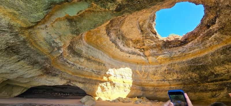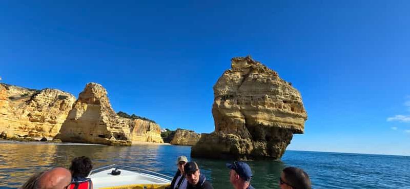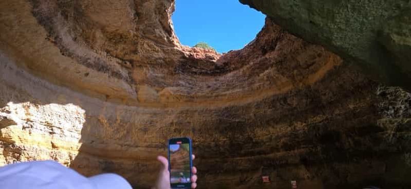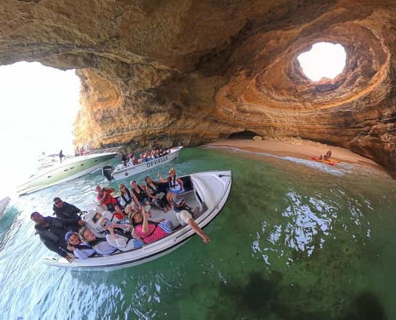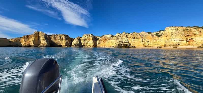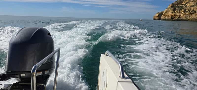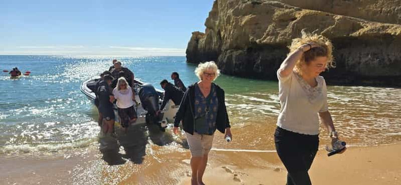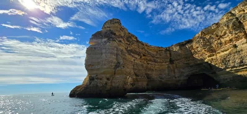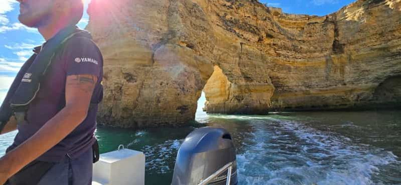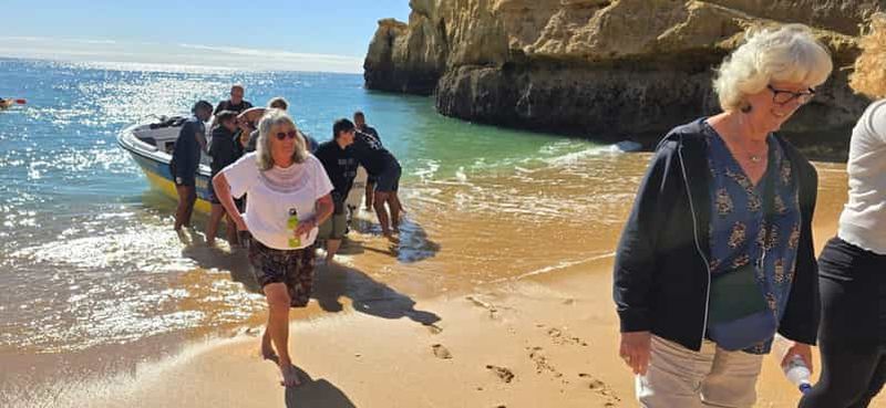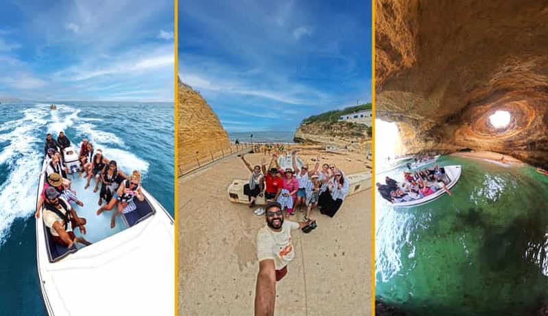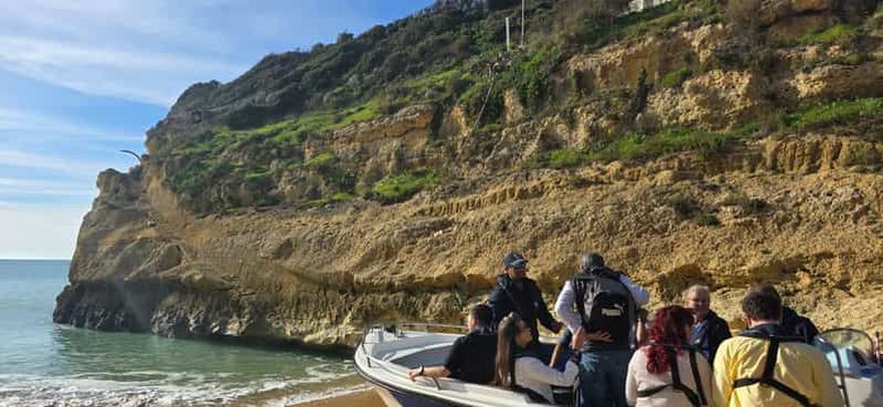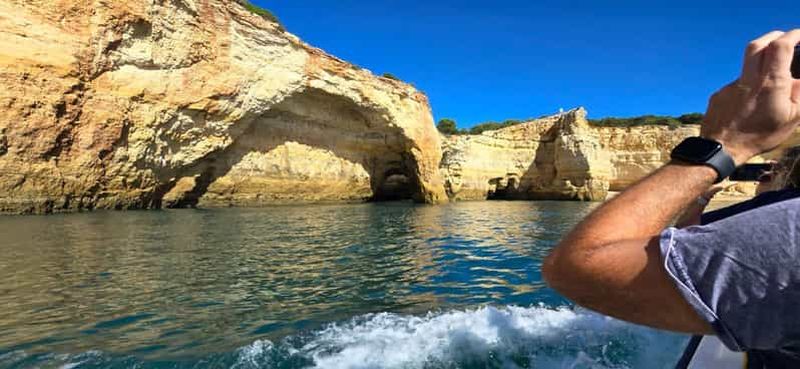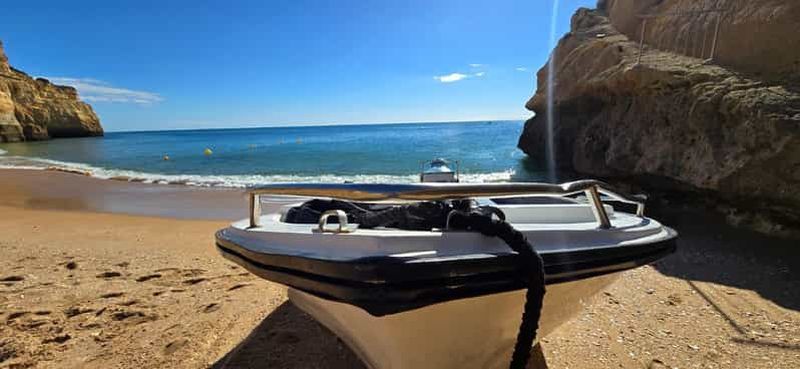 Découvrez la magnifique côte de Benagil avec un tour en bateau dans des grottes emblématiques, un moment à la plage à No...