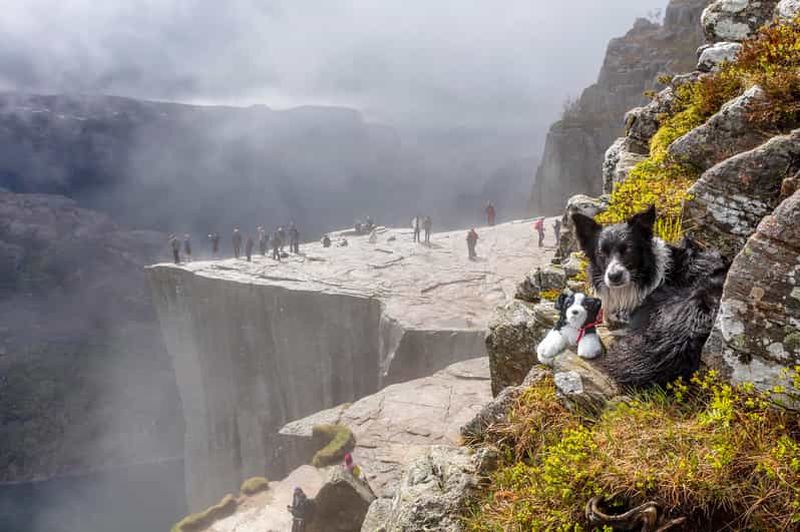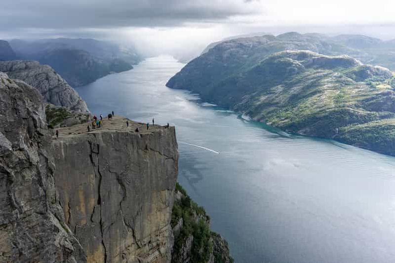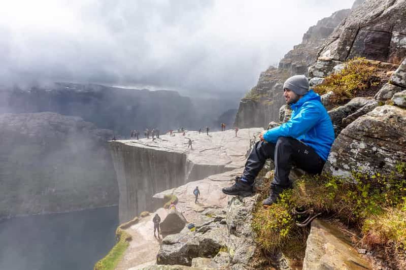 Le point d’orgue de la visite est sans conteste la proximité avec le vide : le plateau surplombe le fjord de 604 mètres. C’est ici que sont capturés les clichés vertigineux illustrant le contraste brutal entre la roche horizontale et l’abîme vertical. S’il n’y a pas de barrières de sécurité pour préserver l’authenticité du site, la prudence est de mise ; il est conseillé de garder ses distances avec le bord, surtout les jours de grand vent, tout en profitant de cette perspective unique au monde.
