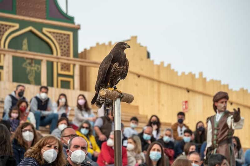 Cetrería de Reyes est un hommage spectaculaire à l’art de la fauconnerie, inscrit au patrimoine culturel immatériel de l’UNESCO. Vous observerez de majestueux rapaces, tels que des aigles, des faucons et des vautours, évoluer en plein vol au-dessus de l’arène. Mis en scène dans un décor médiéval, ce spectacle met en avant la relation ancestrale entre l’homme et l’oiseau. L’adrénaline est garantie lorsque les oiseaux frôlent la foule avec précision.