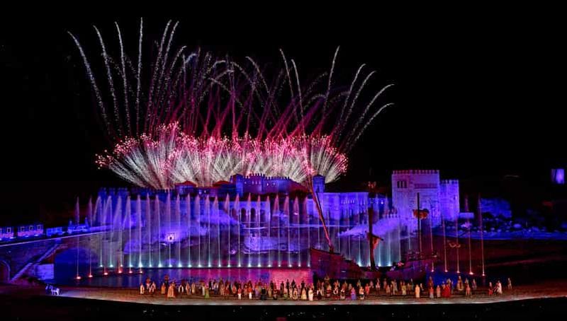 Installé sur plus de 30 hectares, ce vaste domaine vous invite à explorer plusieurs spectacles proposés tout au long de la journée. Vous parcourrez différents décors, allant des forteresses médiévales aux palais mauresques. Chaque univers thématique vous permet de plonger dans l’histoire espagnole et d’en saisir toute la richesse narrative.
