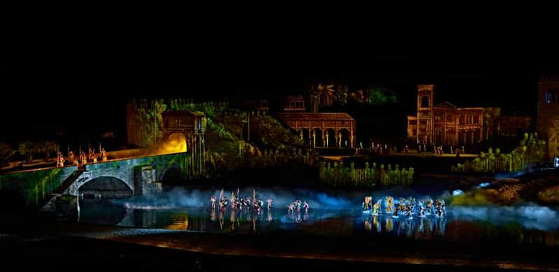 El Misterio de Sorbaces vous transporte à l’époque romaine, où l’Hispanie est confrontée à de puissantes tribus barbares. Dans un décor antique, découvrez l’héroïsme des premiers chrétiens et l’emprise de Rome sur ces terres. Gladiateurs, cavaliers et scènes théâtrales rythment ce spectacle mêlant prouesses athlétiques et récits légendaires. Les jeux de lumière et la bande sonore renforcent l’atmosphère énigmatique de cette histoire méconnue, où courage et foi se rejoignent intensément.