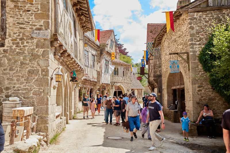 Arpentez les ruelles pavées de cette reconstitution du Moyen Âge, créée en 1979. Entourée de remparts, la cité abrite échoppes d’artisans, tours de guet et maisons à colombages. Les comédiens font revivre l’animation des marchés d’antan et vous invitent à découvrir les métiers du cuir, de la calligraphie ou de l’enluminure. Une atmosphère où l’on perçoit la convivialité d’un bourg fortifié d’autrefois, en plein cœur du parc.