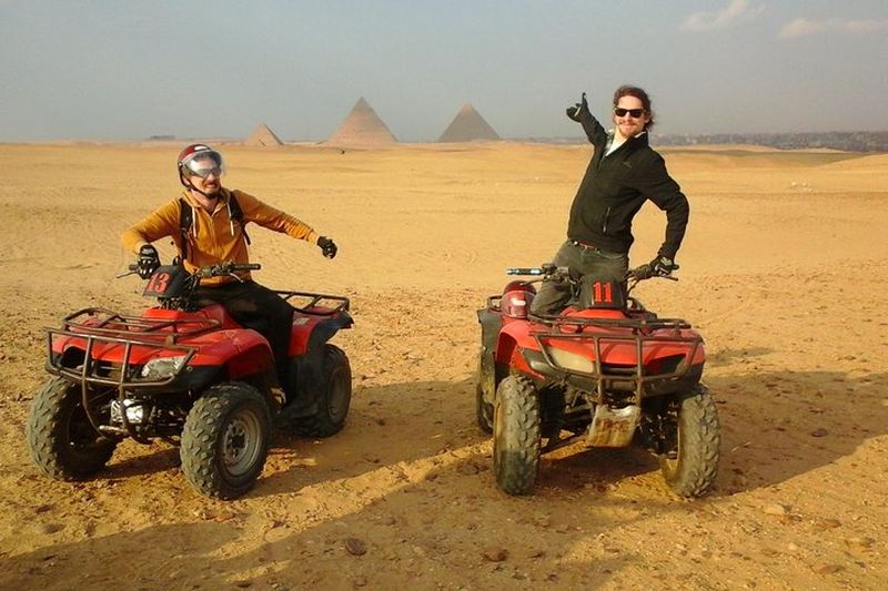 Profitez d'une aventure passionnante en quad pour explorer les majestueuses pyramides de Gizeh. Sentez l'adrénaline mont...