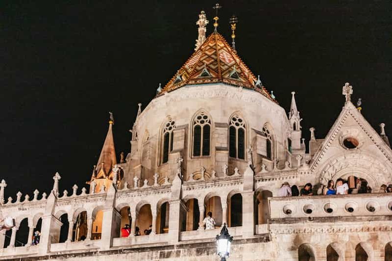 Découvrez le quartier emblématique du château de Buda lors d'une visite guidée à pied après la tombée de la nuit. Laisse...