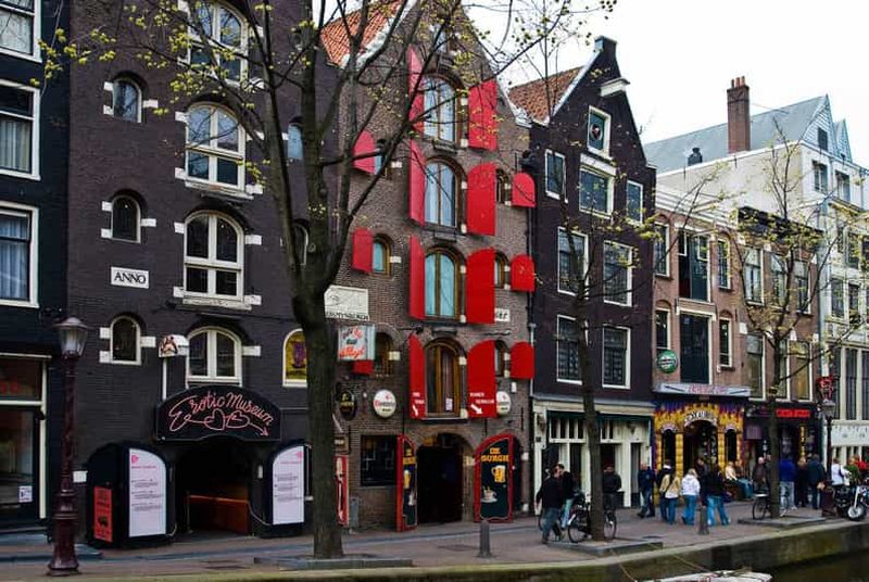 Le quartier rouge regorge de sex-shops et peep-shows historiques. Le Casa Rosso, cabaret érotique ouvert depuis 1968, est l’un des plus célèbres. Ces lieux représentent la dimension spectaculaire et commerciale de la sexualité, intégrée à la culture néerlandaise.