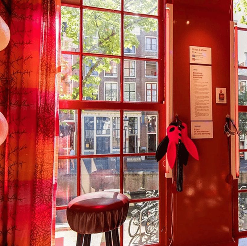 Cette section reproduit à l’identique la célèbre vitrine d’un bordel amstellodamois. Elle dévoile également la réalité d’une chambre de travailleuse du sexe, avec ses objets du quotidien. Inaugurée en même temps que le musée, elle s’appuie sur des témoignages de professionnelles offrant une immersion unique. Le visiteur peut ainsi mieux comprendre la vie méconnue de ces femmes, entre enjeux économiques, contraintes réglementaires et soucis de sécurité au cœur du quartier rouge.