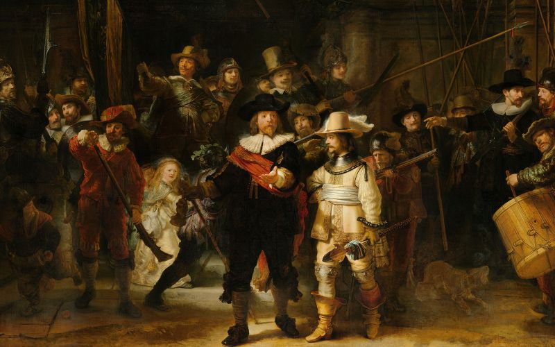La célèbre Ronde de nuit de Rembrandt a subi une réduction en 1715 pour être installée dans l’hôtel de ville d’Amsterdam. Cette opération a modifié l’équilibre visuel de la composition, supprimant certains détails sur les bords. Vous pouvez aujourd’hui admirer le chef-d’œuvre dans sa version tronquée et emblématique au Rijksmuseum.