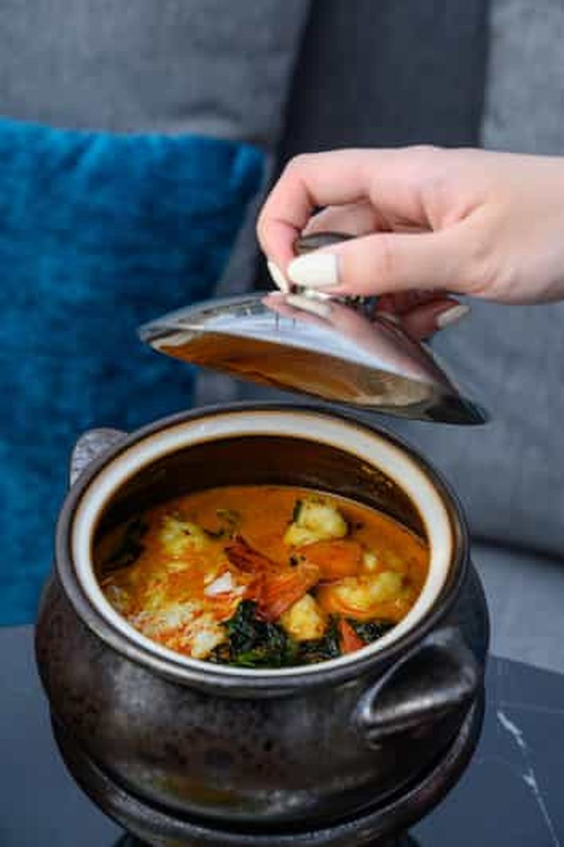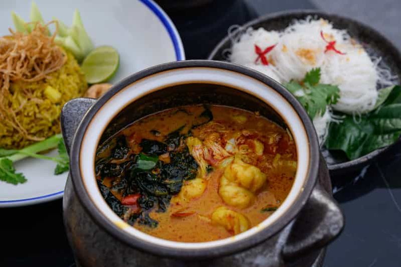Choisissez 6 plats tels que le curry jaune de chair de crabe aux crevettes servi avec des nouilles de riz et d'autres menus avec boissons.