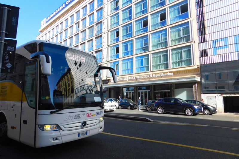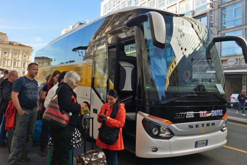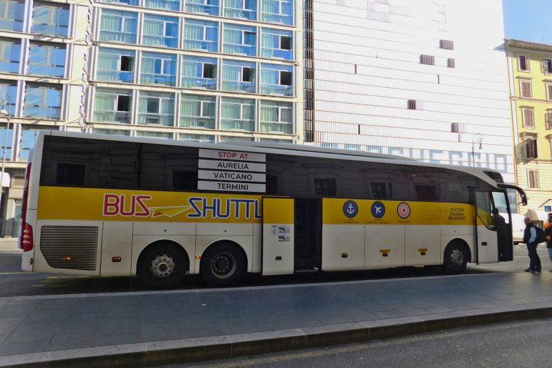 Les navettes Terravision et SIT Bus relient Fiumicino à la gare Termini pour 5 à 7 € par personne. Départs depuis le parking bus, niveau Arrivées, signalés par des panneaux blancs et bleus « Bus Shuttle ». Comptez 50 à 75 minutes selon le trafic, avec des variations importantes vers l’EUR et Ostiense.