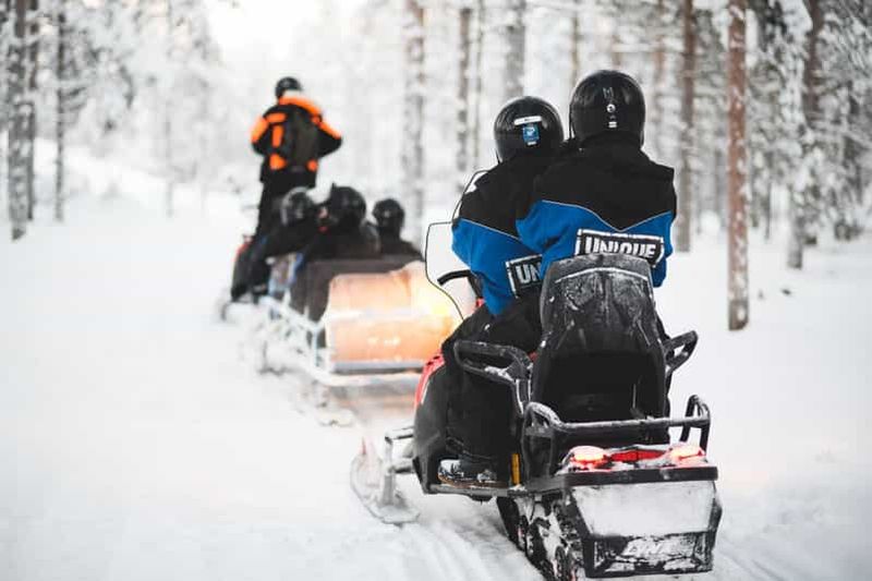Découvrez la Laponie lors d'un safari en motoneige de 2 heures à travers les forêts de la région du cercle arctique. Par...