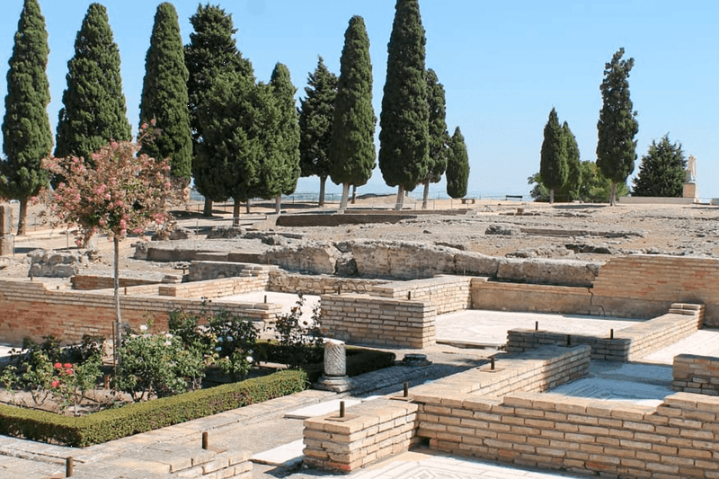 Le quartier résidentiel d’Italica dévoile des demeures élégantes, telles que la Maison de la Nymphe, la Maison de l’Éxèdre et la Maison des Oiseaux. Construites entre le IIe et le IIIe siècle, elles abritent de mosaïques, dont la célèbre mosaïque de Neptune. Ces décors polychromes illustrent des scènes mythologiques et des motifs géométriques. Le raffinement de l’architecture et la richesse des matériaux reflètent l’aisance de la classe aisée de l’époque.