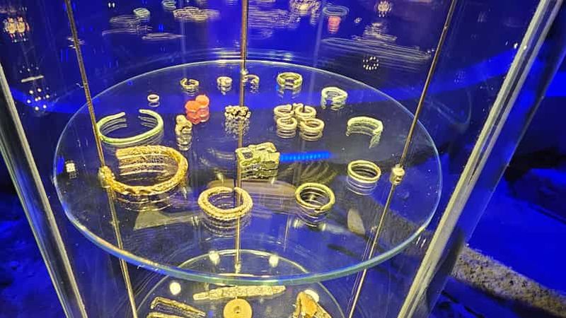 Dans ce parcours souterrain, vous verrez plusieurs vitrines exposant une collection unique d’objets quotidiens et de pièces de monnaie historiques. La plupart datent du XIIIe au XVIe siècle, mettant en évidence l’importance économique de Cracovie à l’époque. Chaque vitrine présente des fragments de céramique, des bijoux ou encore des outils artisanaux et variés. En les observant de près, vous comprendrez mieux la richesse culturelle et l’évolution de la monnaie médiévale en Pologne.