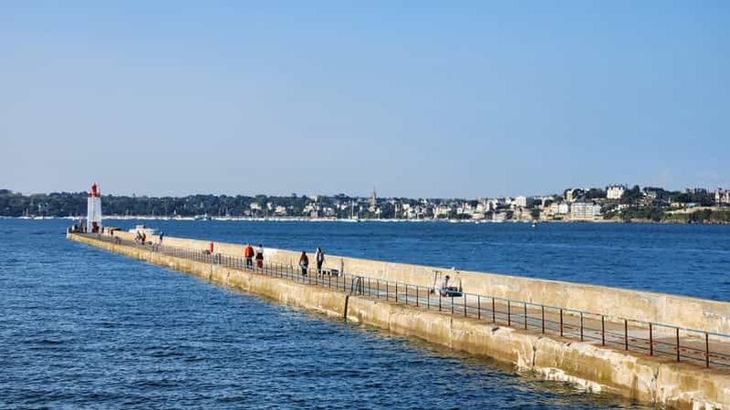 Le tour de la Baie de Saint-Malo / Dinard commentée avec les principaux forts de la Baie, les villas géantes de Dinard, la splendide vue de la mer sur la vielle ville fortifiée de Saint-Malo et sa Cité d'Aleth. Le Barrage de la Rance et Saint Servan...