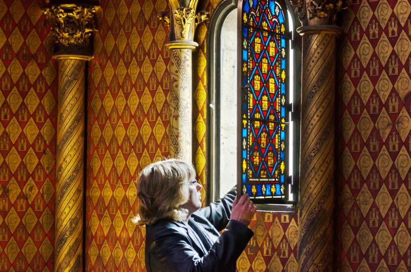 Au XIXe siècle, Viollet-le-Duc entreprit une vaste restauration de la Sainte-Chapelle, recréant certains panneaux de vitraux. Vous noterez ainsi des différences stylistiques entre les verrières d’origine et celles revisitées. Ce choix fut motivé par le souci de cohérence visuelle, tout en intégrant un savoir-faire contemporain parfois critiqué par les puristes.