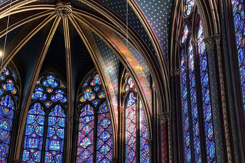 Au XIXe siècle, Viollet-le-Duc entreprit une vaste restauration de la Sainte-Chapelle, recréant certains panneaux de vitraux. Vous noterez ainsi des différences stylistiques entre les verrières d’origine et celles revisitées. Ce choix fut motivé par le souci de cohérence visuelle, tout en intégrant un savoir-faire contemporain parfois critiqué par les puristes.