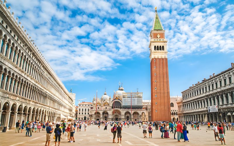 Haut de 98,6 m, ce clocher construit au IXe siècle puis reconstruit en 1912 délivre une vue panoramique sur Venise. Il servait autrefois de phare et de tour de guet stratégique pour la République de Venise.