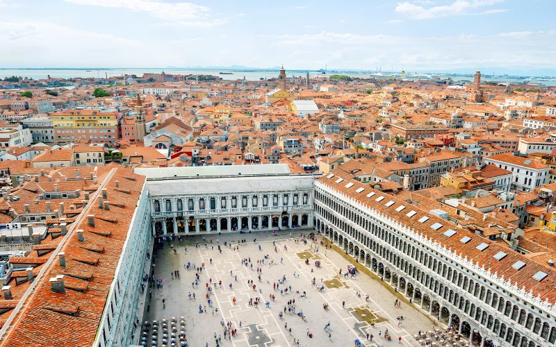 Ces bâtiments bordent la place Saint-Marc sur trois côtés. Ils formaient les bureaux et résidences des procurateurs de Saint-Marc, deuxième dignité après le doge. Les Procuraties incarnent l’élégance architecturale vénitienne des XVIe et XVIIe siècles.