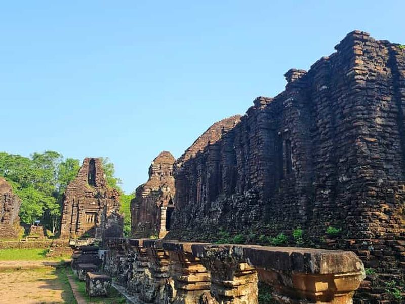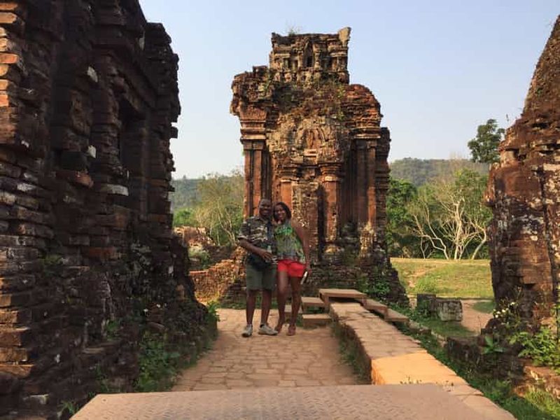 Participez à l'excursion matinale de 5 h 30/8 h au sanctuaire de My Son avec un guide expérimenté et dégustez la cuisine champa. Seule l'option de 8h00 inclut une performance artistique Champa. Les options de 5h30 et 8h00 excluent toutes deux le trajet en bateau.