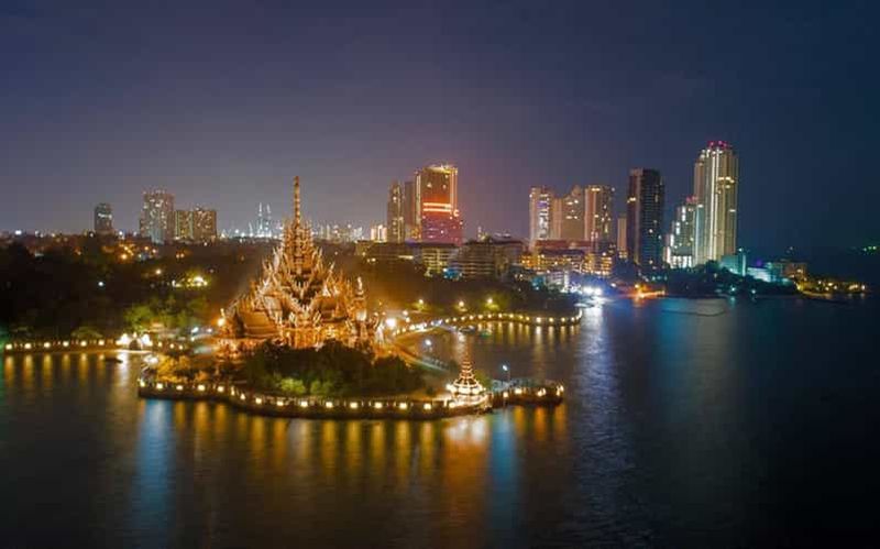 Le Sanctuaire de la Vérité est un site incontournable situé au nord de Pattaya, dans le district de Bang Lamung. Pour vous y rendre, le moyen le plus simple est de prendre un taxi ou un tuk-tuk depuis le centre-ville, situé à environ 7 km de l’attraction. Si vous séjournez près de la célèbre Walking Street, prévoyez un trajet d’environ 20 minutes en voiture. Vous pouvez aussi rejoindre le sanctuaire à partir de la plage de Wong Amat, qui se trouve à environ 2 km et est accessible à pied en moins de 30 minutes.