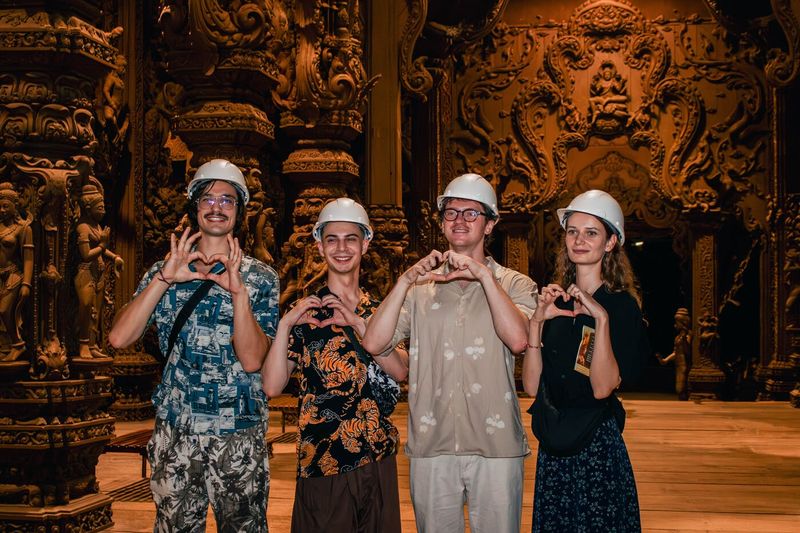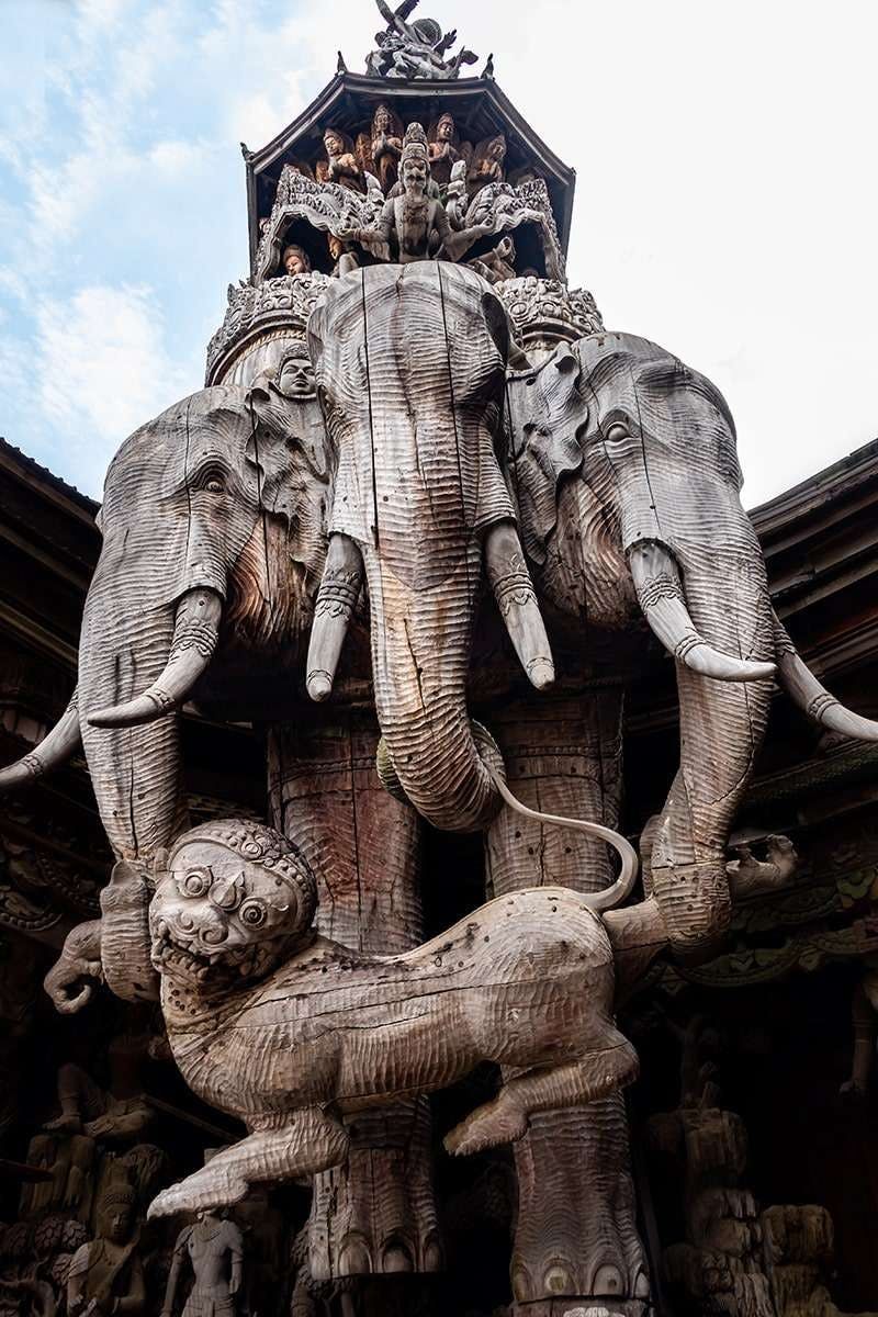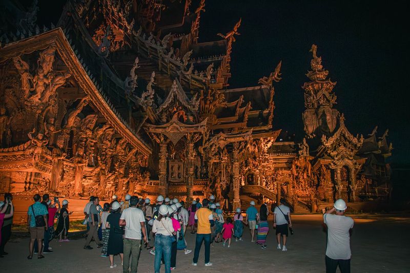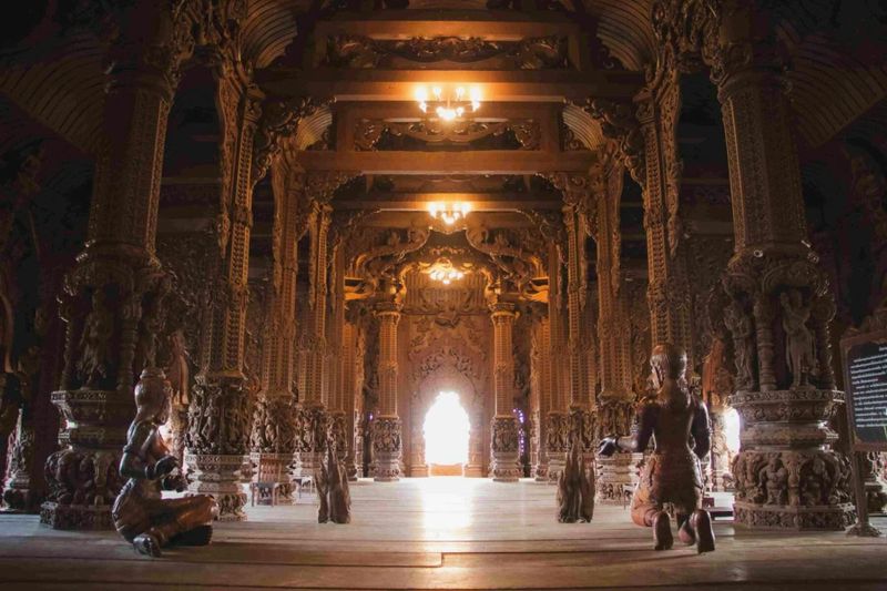 Ce monument majestueux est encore en construction, prévue pour s’achever en 2050. Chantier spectaculaire, il est érigé entièrement en teck, bois réputé pour sa durabilité. Sur ses 105 mètres de haut, le Sanctuaire de la Vérité présente des sculptures complexes dédiées à la mythologie thaïlandaise, indienne, cambodgienne et chinoise. Utilisant des techniques traditionnelles de menuiserie, l’absence de clous métaphorise la fluidité et la pérennité de la culture et de la foi humaine.