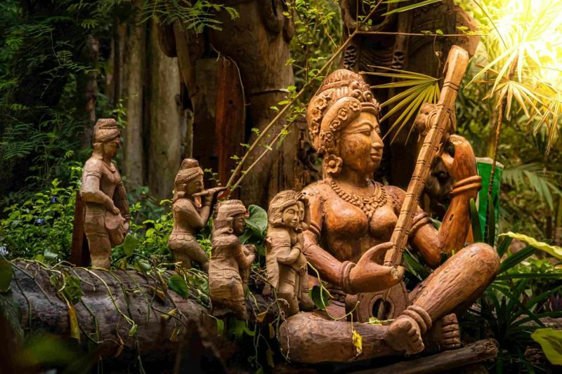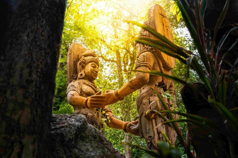 En parcourant ses allées, vous contemplerez d’innombrables sculptures finement travaillées, inspirées à la fois du bouddhisme et de l’hindouisme. Chacune symbolise un aspect essentiel de la vie et de la cohabitation entre les peuples. Vous pourrez ainsi apprécier la profondeur spirituelle mise en avant par ce mélange harmonieux et significatif.