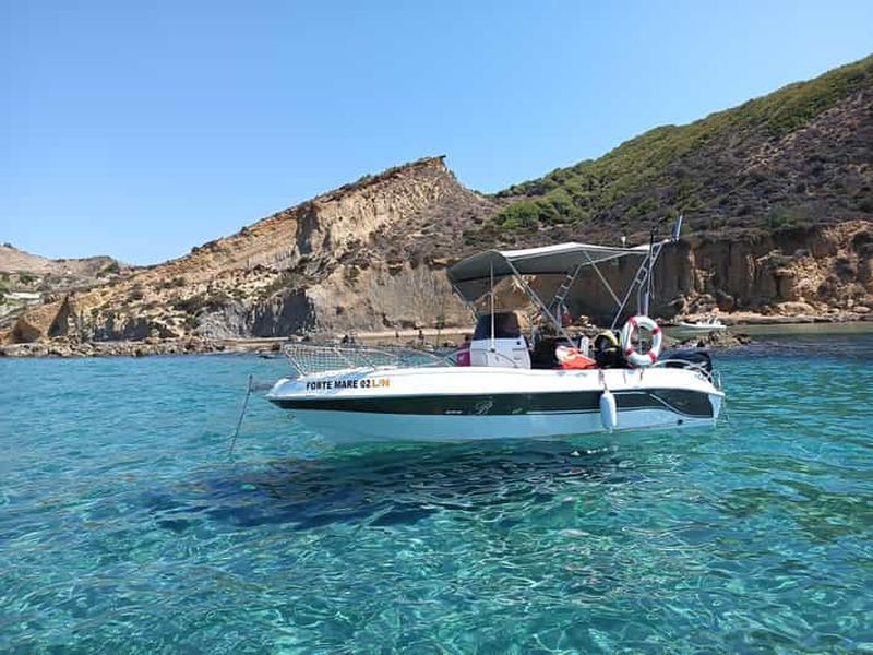 Admirez le coucher du soleil depuis un bateau à la Scala Dei Turchi tout en dégustant un apéritif typiquement italien. P...