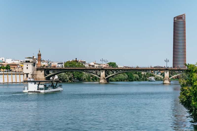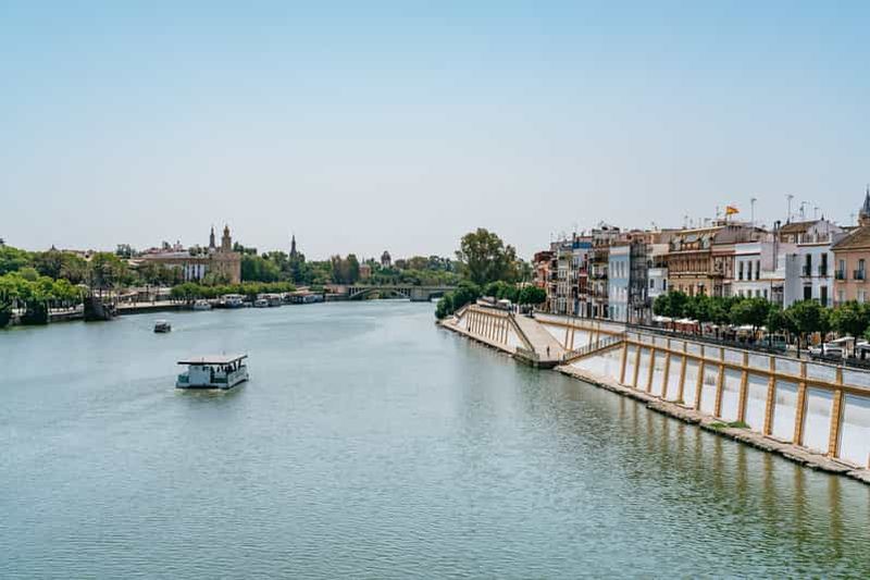 Lors d’une croisière à Séville, vous naviguez sur le Guadalquivir pour découvrir la ville sous un autre angle. Depuis le bateau, vous admirez les ponts emblématiques, les berges animées et les façades colorées des quartiers historiques. Cette balade fluviale permet de profiter d’une vue dégagée sur les principaux monuments visibles depuis le fleuve et les rives aménagées, tout en bénéficiant d’une atmosphère paisible loin de l’agitation des rues.