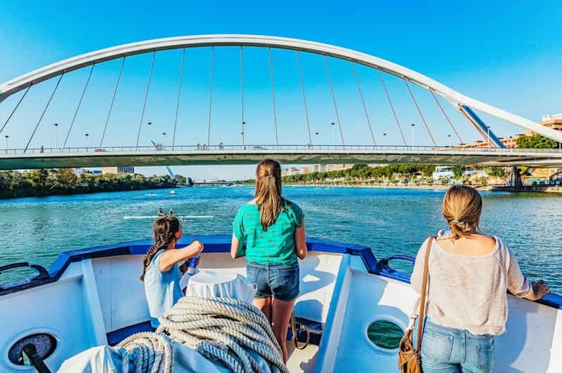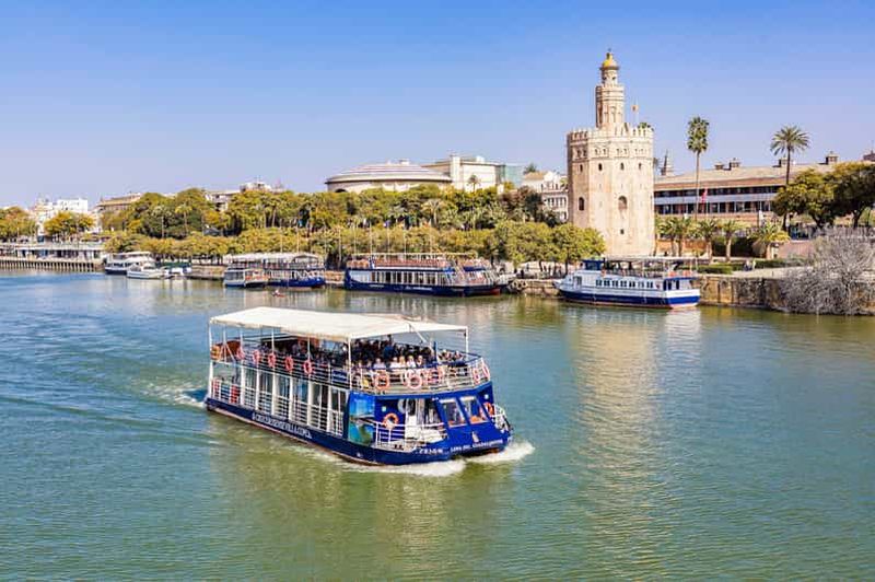 Lors d’une croisière à Séville, vous naviguez sur le Guadalquivir pour découvrir la ville sous un autre angle. Depuis le bateau, vous admirez les ponts emblématiques, les berges animées et les façades colorées des quartiers historiques. Cette balade fluviale permet de profiter d’une vue dégagée sur les principaux monuments visibles depuis le fleuve et les rives aménagées, tout en bénéficiant d’une atmosphère paisible loin de l’agitation des rues.