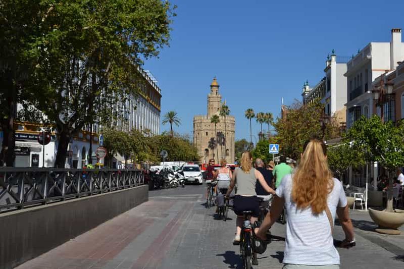 Découvrez Séville de manière informelle et panoramique lors d'une visite de 3 heures à vélo dans la ville. Avec votre gr...