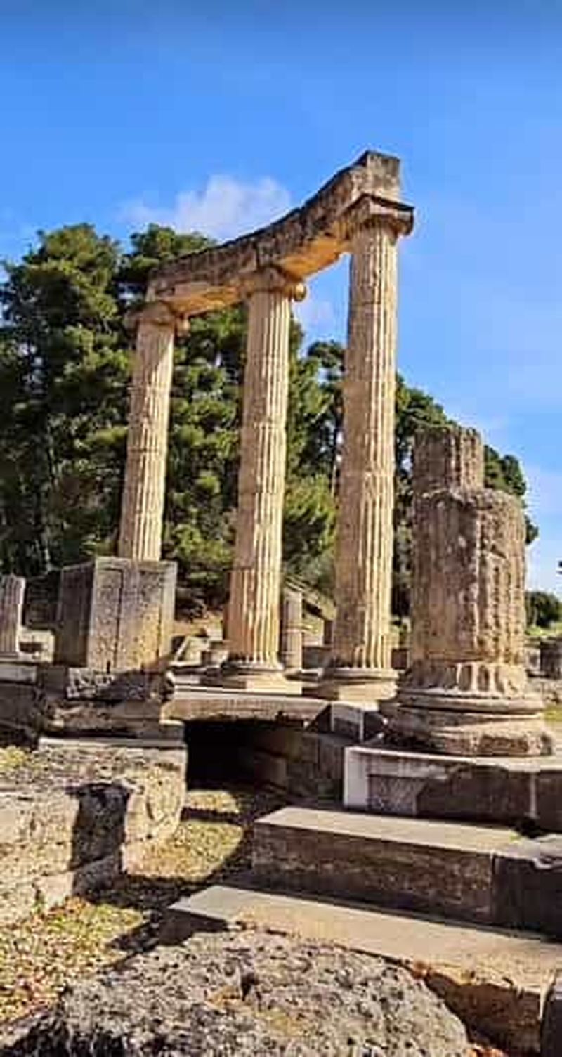 Élevé par Philippe II de Macédoine après sa victoire à la bataille de Chéronée en 338 av. J.-C., le Philippeion célèbre le pouvoir des Argéades. De forme circulaire, ce monument ionique abritait les statues en or et ivoire de la famille royale macédonienne, dont Philippe II et Alexandre le Grand. Au cœur de l’Altis, il illustre la propagande politique à travers l’architecture, reflétant l’ambition de ses bâtisseurs dans l’enceinte d’Olympie.