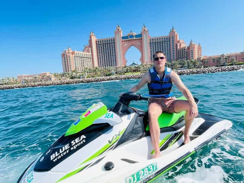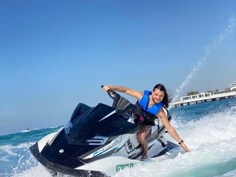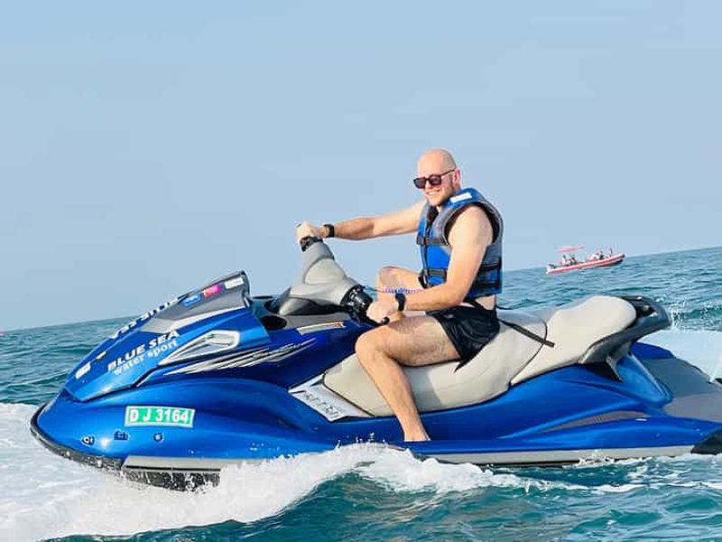 Profitez d'une balade de 30 minutes en jet-ski le long de la superbe côte de Dubaï ! Vivez des sensations fortes et admirez des vues emblématiques telles que Burj Al Arab et Palm Jumeirah. Parfait pour les débutants comme pour les pilotes chevronnés, avec des instructions de sécurité fournies par notre guide.