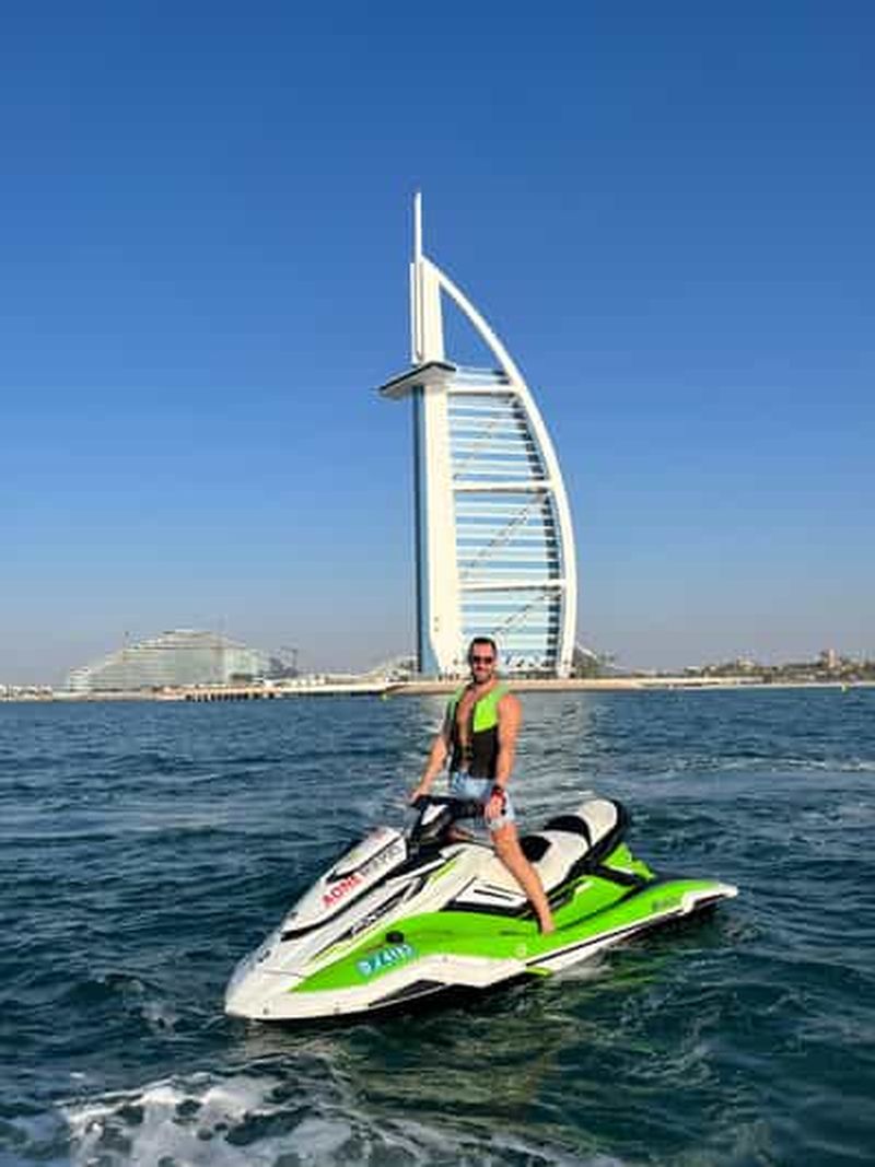 Explorez Dubaï et tous ses gratte-ciel lors d'une passionnante promenade en jet-ski de 45 minutes. Admirez le Burj Khali...