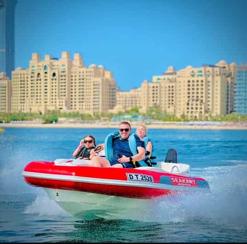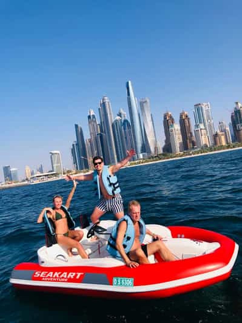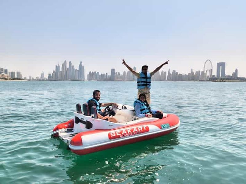 Un tour entièrement privé, juste pour vous ou votre groupe. Cette excursion en bateau de 30 minutes couvre la plage de JBR et Ain Dubaï ou le Palm Lagoon, ainsi qu'un tour gratuit en pleine mer pour ressentir les sensations des SeaKarts ! Contrairement à un jet ski, un Seakart ne se retourne pas, alors profitez de la vitesse.