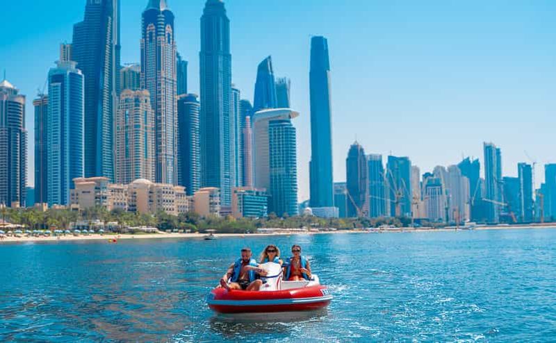 Cette excursion de 60 minutes en bateau autoguidé vous permet de visiter le Palm Jumeirah, le Burj Al Arab ou Atlantis the Palm et de faire une promenade en mer pour ressentir des sensations fortes ! Idéal pour ceux qui préfèrent passer une heure sur l'eau et faire un tour rapide du paysage marin de Dubaï.
