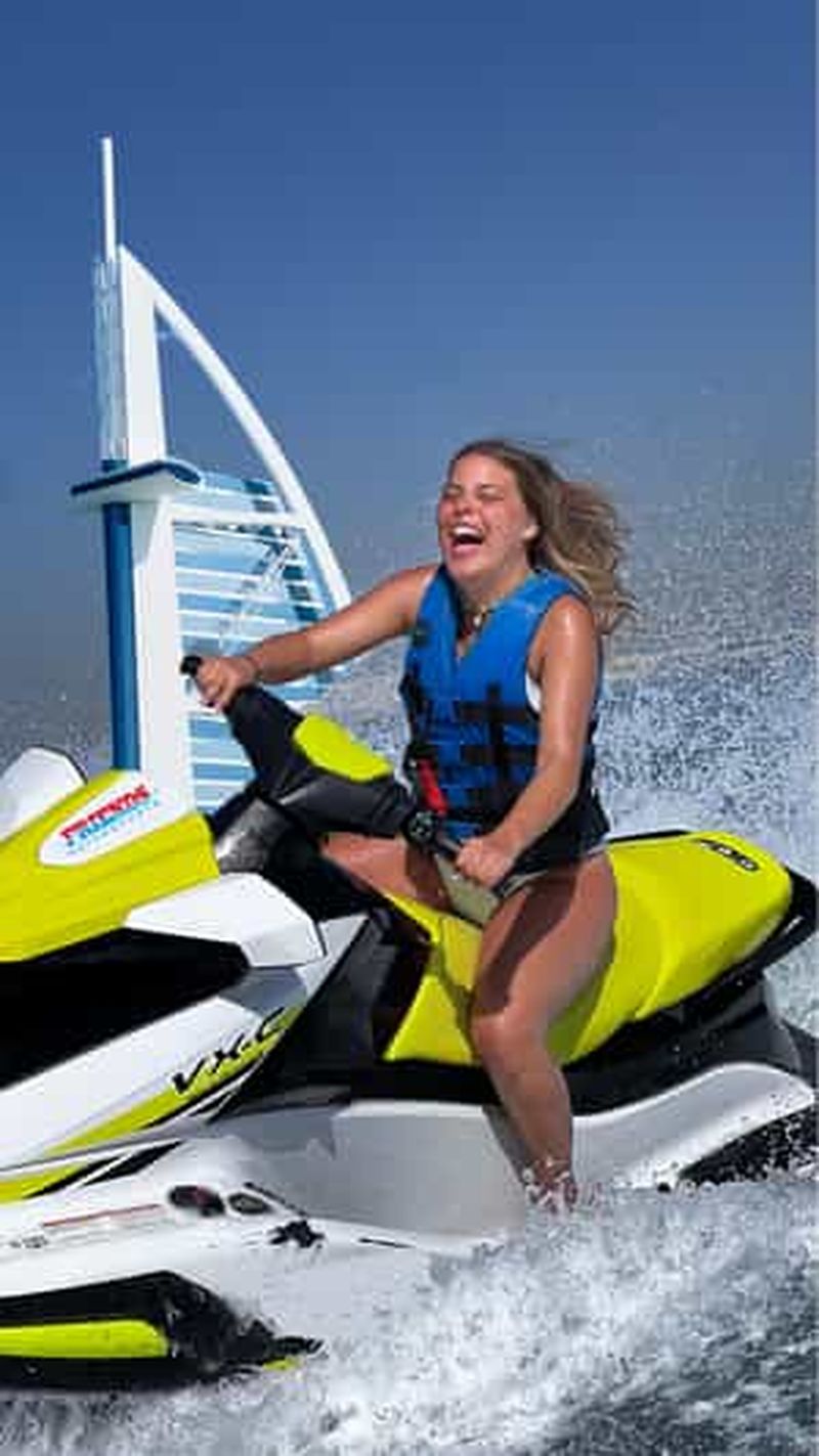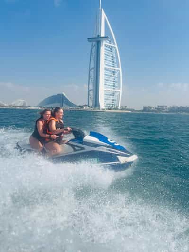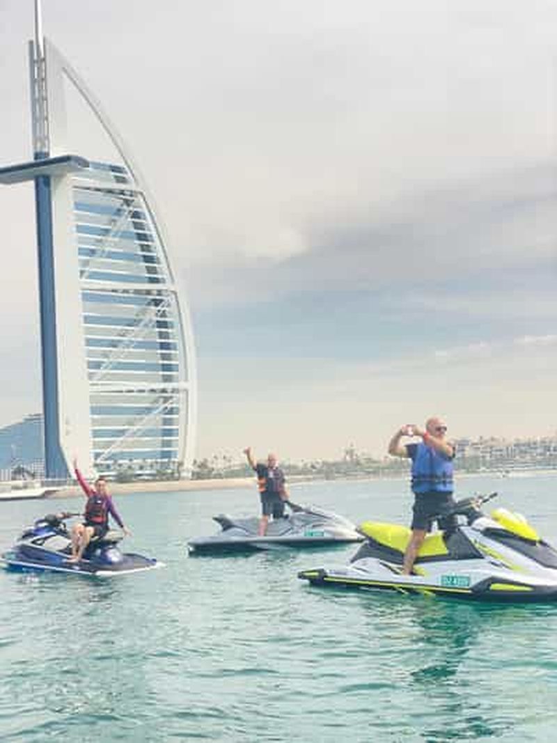 Partez de Jumeria Marine Drive jusqu'à la tour Burj Al Arab pour prendre des photos et des vidéos, puis revenez en voiture. Vous serez guidé par des capitaines sur leurs propres jet-skis pour vous protéger si vous avez besoin d'aide.