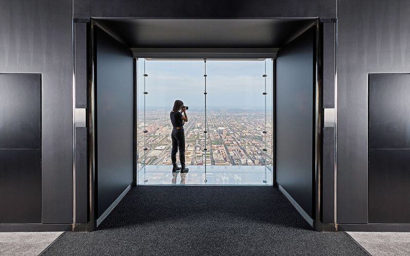 En 2009, le Skydeck s’est transformé avec l’introduction du Ledge, un ensemble de boîtes de verre qui s’étendent à 1,3 mètre hors du bord de la tour. Conçues pour offrir une expérience immersive de la hauteur vertigineuse de la ville, ces plateformes en verre ont réinventé l’attraction, attirant chaque année des millions de visiteurs désireux de vivre une expérience palpitante.