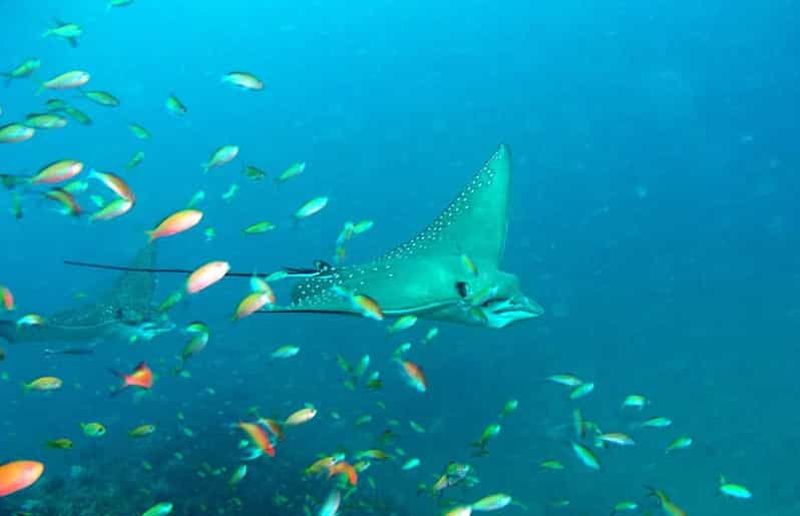 La rencontre avec des tortues marines contribue grandement à la réputation de Malé comme destination phare de la plongée en apnée. Les tortues imbriquées et vertes s’observent généralement autour des herbiers, présents toute l’année. En saison, notamment de mai à octobre, il est aussi possible de croiser des raies manta. Ces géantes paisibles, qui peuvent mesurer jusqu’à cinq mètres d’envergure, offrent un spectacle inoubliable lors de vos sorties en mer.