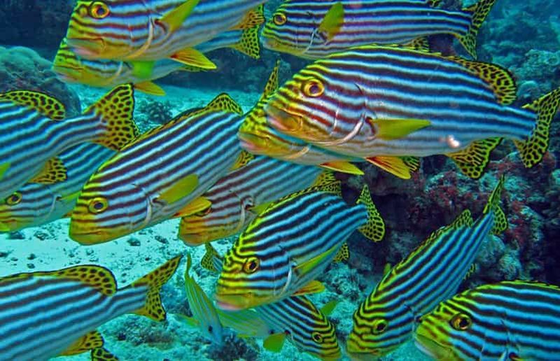 Les récifs coralliens entourant Malé comptent parmi les plus colorés de l’océan Indien, avec plus de 700 espèces répertoriées. Vous pourrez y admirer des coraux durs et mous formant de véritables jardins sous-marins, où se cache une diversité de poissons tropicaux, tels que les poissons-papillons ou perroquets. Les eaux transparentes, dont la température moyenne varie entre 27 °C et 29 °C, rendent l’observation aisée pour tous les niveaux de plongeurs.