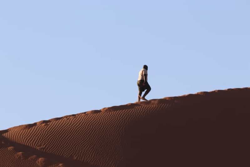 Face au célèbre Deadvlei, Big Daddy s’impose comme un défi incontournable pour les marcheurs, culminant à environ 325 mètres. L’ascension de cette dune, l’une des plus hautes de la zone, demande un effort soutenu dans le sable meuble, mais la récompense au sommet est sans égale. De là-haut, vous dominez l’immensité du Namib et profitez d’une vue vertigineuse sur la cuvette d’argile blanche en contrebas, créant un contraste saisissant avec l’océan de sable rouge environnant.