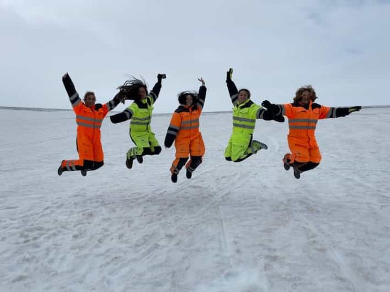 Embarquez pour une excursion en motoneige à Geysir et découvrez les paysages époustouflants du glacier Langjökull. Condu...